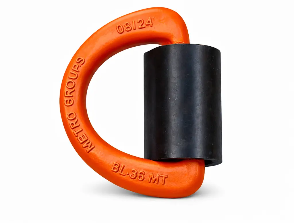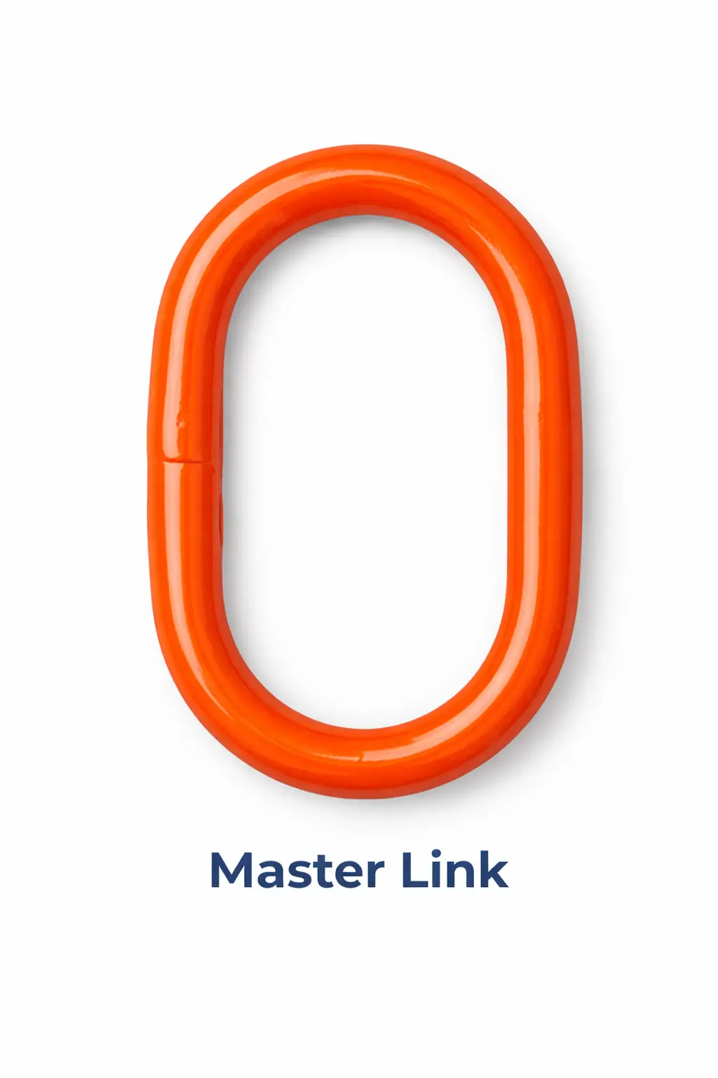 A master link is a forged steel ring used as the main connection point in chain slings and lifting assemblies.