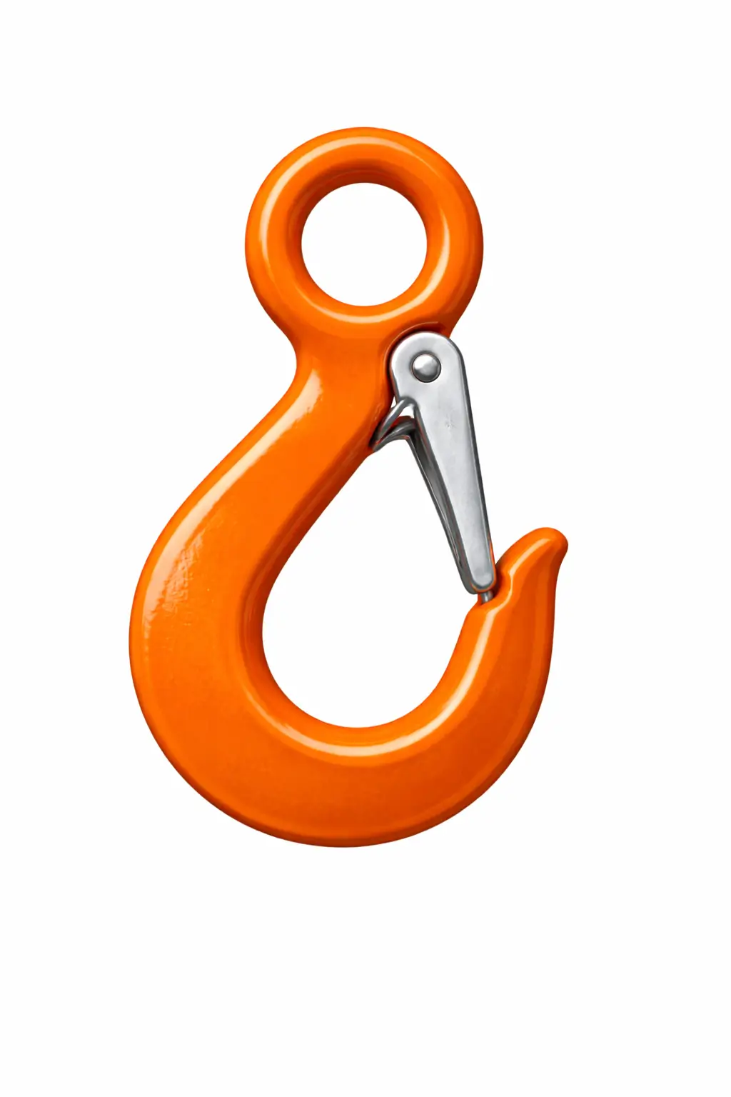 A self-locking eye hook is a lifting hook designed with an automatic locking mechanism that closes under load, preventing accidental disengagement.