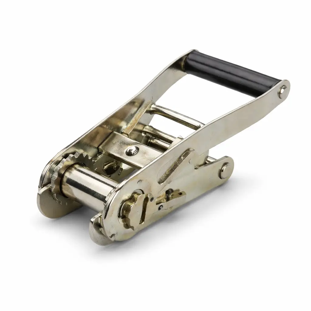 A wire buckle is a high-strength fastening component used with composite straps for securing and tensioning heavy cargo.