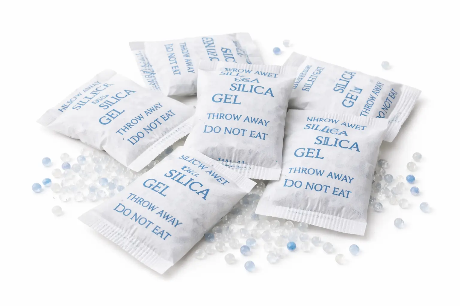 Silica gel is a highly effective moisture-absorbing desiccant used to protect products from humidity, condensation, and moisture damage