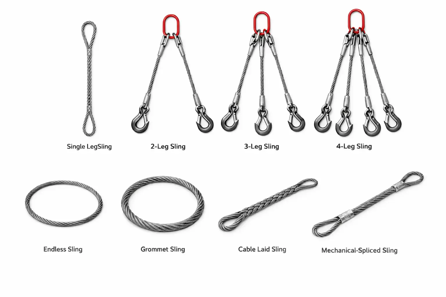 A wire rope sling is a heavy-duty lifting assembly made from high-strength steel wire rope, designed for safe and efficient lifting, rigging, and load handling.